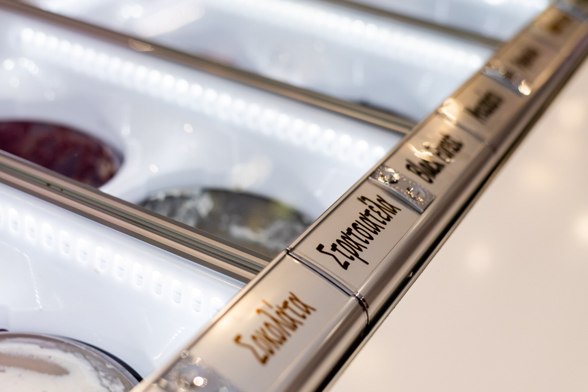 Δεν χρησιμοποιούμε ποτέ έτοιμα μείγματα ή τεχνητές γέυσεις. Αντίθετα, βασιζόμαστε αποκλειστικά στις εξαιρετικής ποιότητας πρώτες ύλες που επιλέγουμε, όπως το φρέσκο τοπικό γάλα υψηλής ποιότητας, η κρέμα γάλακτος, η εξαιρετικής ποιότητας σοκολάτα, τα φρέσκα φρούτα εποχής ή προσεκτικά επιλεγμένα κατεψυγμένα φρούτα, για να δημιουργήσουμε γεύσεις που είναι αυθεντικές και αξέχαστες.